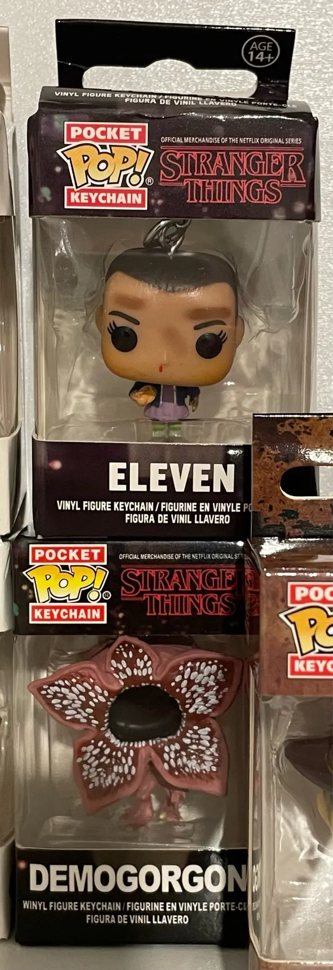 Official Funko Pop! Pocket Pop Keychain featuring your favorite Stranger Things character. Each keychain measures approximately 1.5 inches tall and comes with a sturdy metal keyring attachment. Made from high-quality vinyl with detailed sculpting and paint applications that capture every iconic detail. Comes in original Funko packaging, perfect for collectors who want to keep it mint or display it proudly!